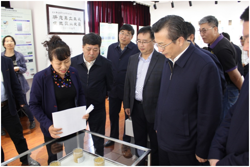 王永康等一行随后走进李艳华大豆种质资源储藏室,详细询问了李艳华有关大豆育种工作的项目支持、硬件条件和队伍建设等方面情况及存在困难,并嘱咐随行主管领导协助李艳华研究员解决种子低温贮存库建设等具体问题,让科学家安心开展科研工作。