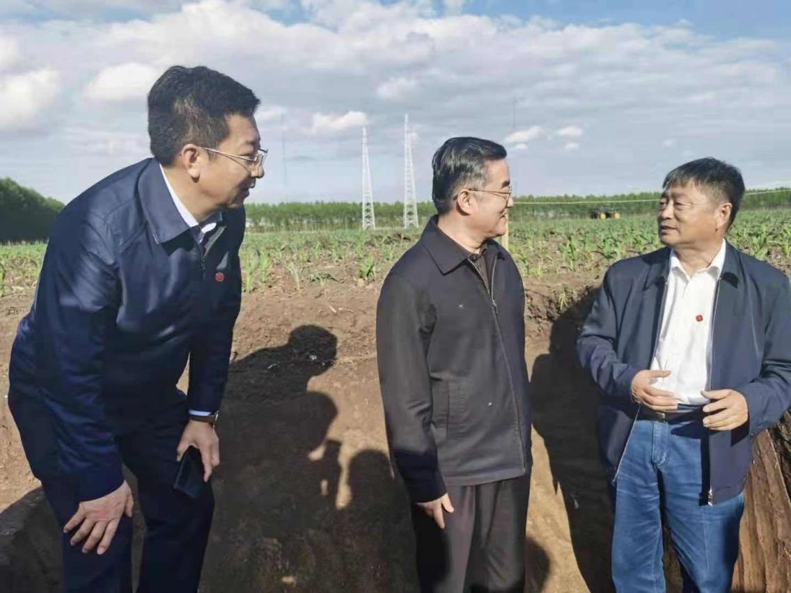 韩晓增和中科院科发局副局长孙命、农业农村部农田司副司长陈章一起考察
