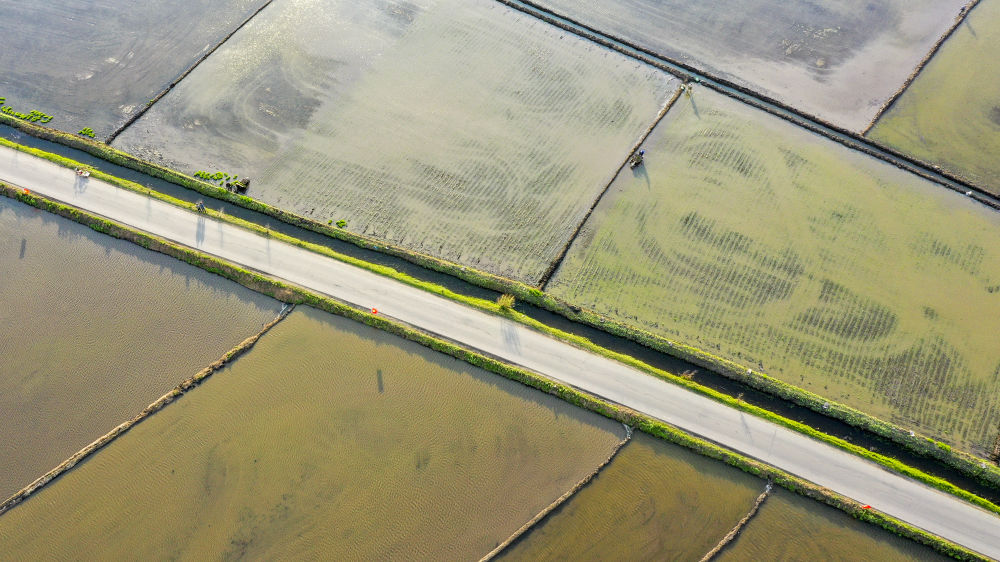 5月,吉林省长春市一处稻田正在进行插秧。新华社记者 张楠 摄