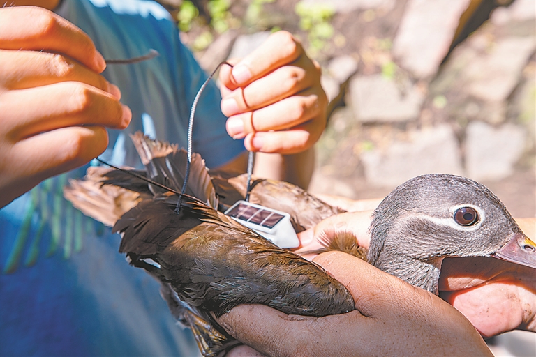 【龙头新闻·生活报】生活报命名的鸳鸯“滨滨”戴上卫星追踪器啦!