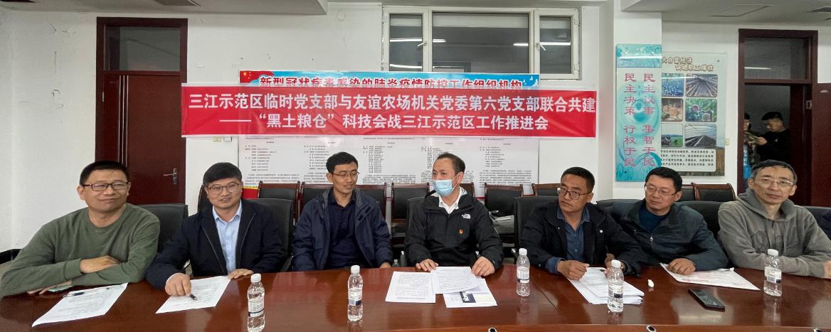 “黑土粮仓”科技会战三江示范区临时党支部与友谊农场机关党委第六党支部、二道河农场生产党支部开展联合共建活动