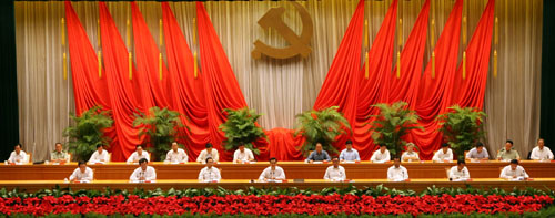 胡锦涛强调,中国特色社会主义,是当代中国发展进步的旗帜,是全党全国各族人民团结奋斗的旗帜。我们必须始终不渝地坚持以邓小平理论和“三个代表”重要思想为指导,深入贯彻落实科学发展观,毫不动摇地坚持和发展中国特色社会主义。