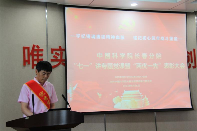 为深入学习贯彻习近平总书记关于党纪学习教育的重要讲话和重要指示精神,热烈庆祝中国共产党成立103周年,6月28日上午,中国科学院长春分院隆重举办2024年度“七一”讲专题党课暨“两优一先”表彰大会。会上,中共中国科学院长春分院分党组、中共中国科学院长春分院系统单位委员会对在长春分院系统单位过去一年党建工作中,表现突出的集体和个人给予表彰。