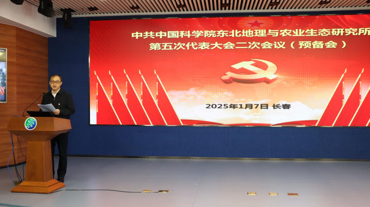 2025年1月7日,中共中国科学院东北地理与农业生态研究所第五次代表大会二次会议在综合楼六楼报告厅召开。全所93名党员代表参加会议,会议由党委书记、副所长王宗明主持。