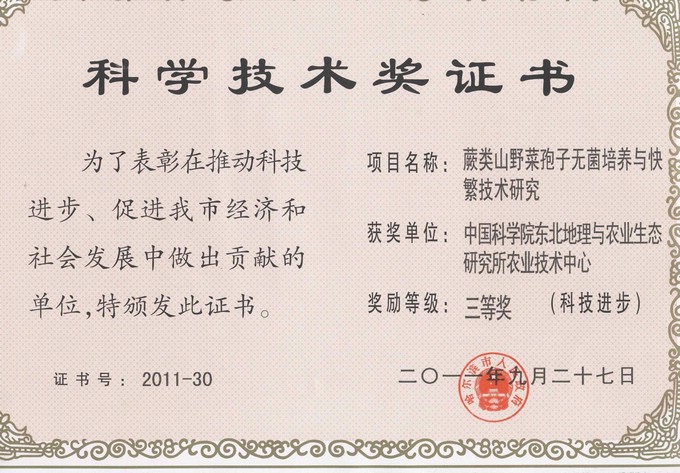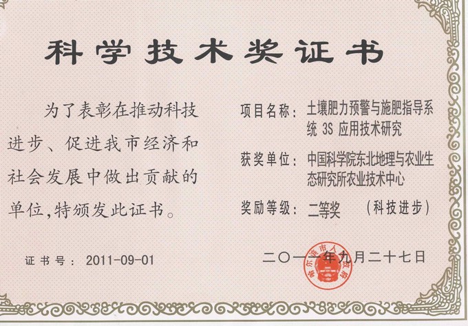 近日,由赵军研究员及所在课题组完成的 “土壤肥力预警与施肥指导系统3S应用技术研究” 获得哈尔滨市科技进步二等奖;王占哲研究员完成的“特种玉米有机种植技术研究”、赵恒田研究员完成的“蕨类山野菜孢子无菌培养与快繁技术研究”获得哈尔滨市科技进步三等奖。