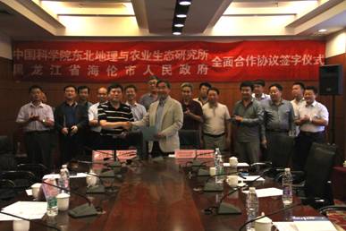 9月7日,我所与黑龙江省海伦市人民政府在哈尔滨市签署了“中国科学院东北地理与农业生态研究所与黑龙江省海伦市农业科技合作协议”。何兴元所长和海伦市市长王学斌代表双方签署协议,签字仪式由张平宇副所长主持。海伦市副市长刘忠强和相关各局领导一行7人和我所副所长黄铁青、副所长李秀军以及海伦站、科研计划处相关领导11人参加了签字仪式。