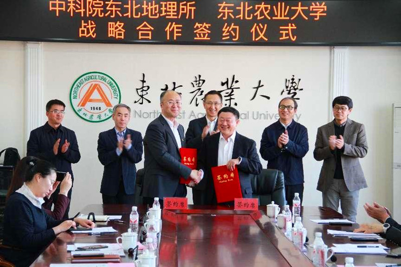 东北地理所人事教育处与东北农大研究生院,中科院黑土区农业生态重点实验室与东北农大农学院、资源与环境学院,中科院大豆分子设计育种重点实验室与东北农大农学院、生命学学院,中科院湿地生态与环境重点实验室与东北农大资源与环境学院、水利与土木工程学院,东北区域发展研究中心、遥感与地理信息研究中心与东北农大公共管理与法学院分别签订合作协议。