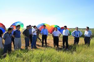 下午专家组及课题组人员赴杜蒙县他拉哈镇先后对不同程度盐碱化土地生态治理技术试验与示范区进行了实地考察,并就一些治理技术实施问题进行了现场讨论。