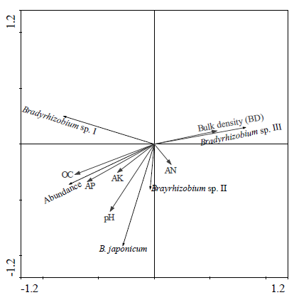 图1 大豆根瘤菌与土壤理化因子间的相关关系
