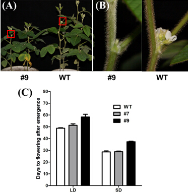 开花期、成熟期和株高、主茎粗细等性状是影响大豆生产潜力的重要因素,阐明调控大豆开花期和植株形态的分子机理,是提高大豆产量潜力的关键科学问题。