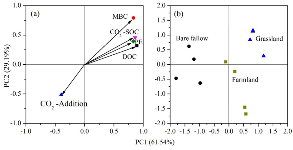 土壤活性碳组分(MBC,DOC)的主成分分析