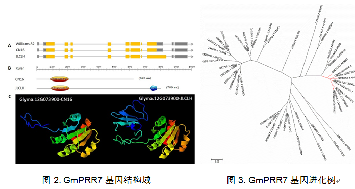 东北地理所大豆分子设计育种实验室夏正俊研究团队在利用栽培品种与农家品种杂交制备了一个遗传群体,在12号染色上定位调控生育期的主效QTL位点qFT12-1,并通过图位克隆法成功地鉴定了调控qFT12-1的生物钟基因GmPRR7。该基因含CCT结构域,属于生物钟调控基因TOC1基因家族。表达分析表明因GmPRR7及同源基因在表达上呈明显的日节律性变化规律。在野生及栽培大豆品种间的等位变异分化表明,GmPRR7与大豆的驯化关系密切。本研究成果揭示了生物钟基因与大豆光周期反应之间的内在联系,丰富了人们对大豆光周期调控机制的认识,同时为大豆分子设计育种提供重要的分子元件。