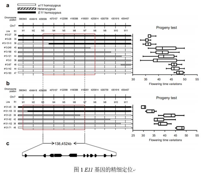 Feifei Wang, Haiyang Nan, Liyu Chenet al., A new dominant locus, E11, controls early flowering time. Molecular breeding, 2019, 39:70