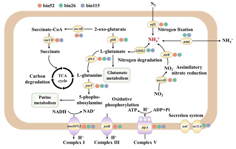 图2 BMP微塑料圈中氮代谢关键微生物调控路径