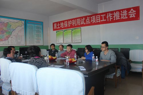 在海伦市农业技术推广中心会议室,推进了农业部东北黑土地保护项目在海伦市的实施工作。韩晓增研究员作为东北黑土保护项目专家组组长,听取了海伦市农业技术推广中心吴全伟副主任对2015年项目实施情况的介绍,海伦市选择了9个乡镇、20个村和5个农机合作社来落实该项目,针对海伦市的实际情况开展了5种黑土地保护模式,主要的技术有秸秆还田、有机肥施用、玉米大豆轮和测土配方施肥。韩晓增研究员针对玉米秸秆还田和有机施用等相关技术进行了指导,韩晓增研究员指出玉米秸秆深混还田应该使用大马力拖拉机配合液压翻转犁进行翻扣深混,以增加秸秆还田的深度、避免因表层秸秆还田量过多引起的春季失墒,影响作物出苗等问题。随后与会人员就有机肥集造等问题进行了深入的讨论。