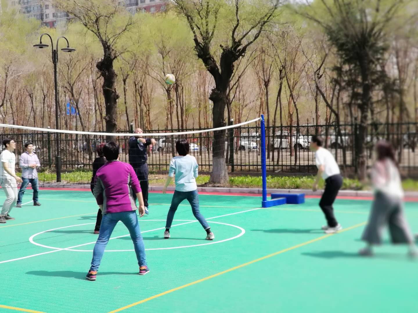 4月28日举办了排球友谊赛,参赛球员在球场上互相尊重,互相学习。每一场比赛,大家都纷纷拿出自己的绝招,扣球、发球,一传、二传,每个环节都尽力发挥,严谨认真,努力拼搏;每一场比赛结束之后,又会互相打气加油,总结经验,准备下一场比赛。