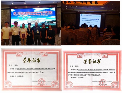 2018年8月7日-11日,我所农田有害生物控制学科组参加了第十四届全国植物线虫学学术研讨会,与国内外专家同行交流了该学科组近期取得的一些研究成果。王从丽研究员在大会上做了“大豆孢囊线虫趋性研究”学术报告。尤佳博士生作的“胞质型G6PDH参与调控寄主植物对根结线虫的敏感性反应”学术报告获得该届研讨会研究生报告一等奖,华萃博士的论文“Identification of HG types of soybean cyst nematode Heteroderaglycines and resistance screening on soybean genotypes in northeast China”获得优秀论文奖。这些成绩的取得说明我所在线虫学领域的研究已得到了国内外专家的认可,预示着我所在国内外相关研究领域具有一定的实力,有潜力在未来的研究中获得更高更有价值的成果。