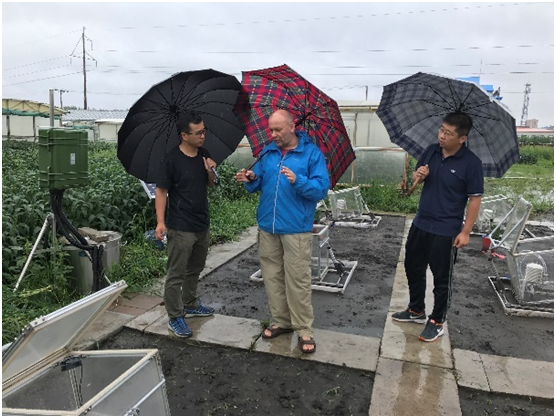 访问期间,Yakov Kuzyakov参观了海伦站。李禄军详细介绍了海伦站长期定位试验,以及最新布设的基于稳定同位素示踪技术的土壤温室气体通量田间原位、实时、连续观测平台。YakovKuzyakov对此深感兴趣,凭借在土壤学同位素领域丰富的研究经验,对试验数据的挖掘和论文形成提出了建设性意见。参观结束后,Yakov Kuzyakov与海伦站科研人员和研究生针对实验设计、数据分析和数据解释进行了深入的讨论与交流。