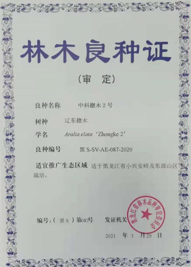 东北地理所“中科蓝果1号”和“中科楤木2号”喜获林木良种证