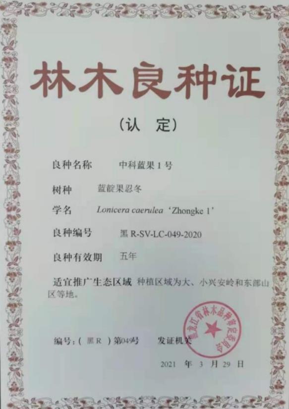 近日,由中科院东北地理与农业生态研究所林下植物资源学科组赵恒田团队培育的“中科蓝果1号”和“中科楤木2号”喜获黑龙江省林木品种审定委员会颁发的林木良种证。