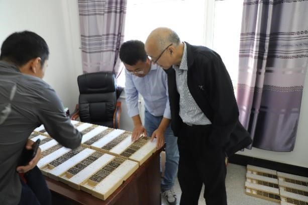 海伦站副站长隋跃宇研究员向郧文聚一行介绍了海伦站建站历史、发展进程、黑土地保护“龙江模式”和“东生”系列大豆应用推广情况以及中科院“黑土粮仓”科技会战组织实施进展;展示了海伦站四十多年来保存的土壤样品、各示范区的不同土壤类型及改良措施。在试验田中,隋跃宇围绕国家碳达峰、碳中和等重大问题介绍了海伦站相关碳同位素标记与土壤温室气体排放原位控制长期试验及黑土区土壤退化现状和耕作土壤和恢复土壤在物理、化学和生物属性上的差别,强调种养结合对保障国家粮食安全具有重要意义。