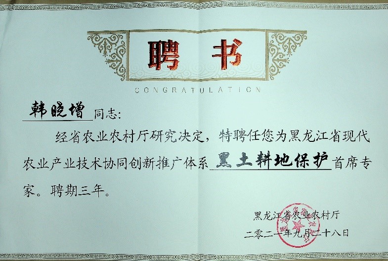 为了推动黑龙江省协同创新体系扩面升级,黑龙江省农业农村厅在黑土耕地保护、绿色有机农业等9个领域遴选、扩增了现代农业产业技术协同创新推广体系9名首席专家。中科院东北地理所黑土保护与利用学科组韩晓增研究员受聘黑龙江省现代农业产业技术协同创新推广体系黑土耕地保护首席专家。