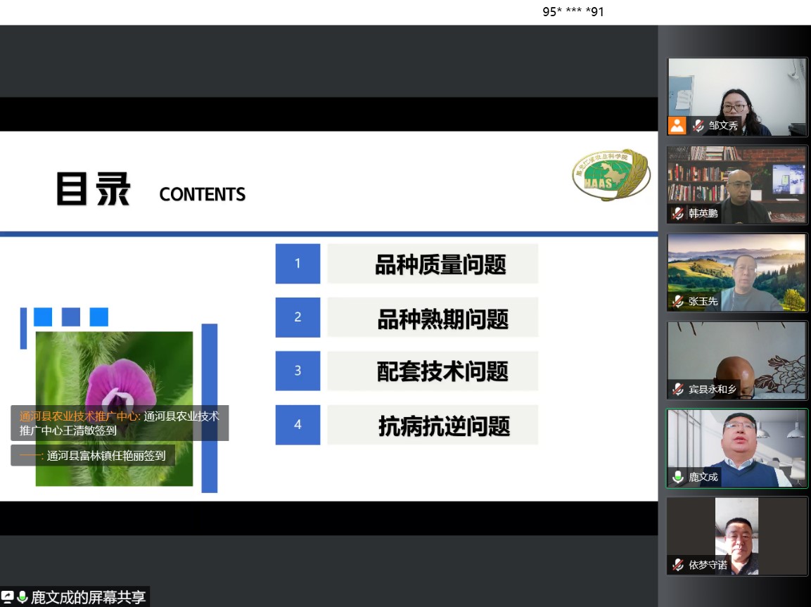 中央农村工作会议中明确提出了2022年的工作重点之一是大力扩大大豆和油料生产。众所周知,黑龙江省是我国最大的优质大豆生产和供应基地,常年大豆种植面积占全国的40%以上,商品率达80%以上,是此次扩种大豆的重点区域之一。黑龙江省人民政府办公厅印发了《2022年黑龙江省扩种大豆实施方案的通知》,提出2022年黑龙江省大豆种植面积将新增1000万亩以上,新增大豆产量26亿斤。为了大力实施大豆产能提升工程,服务于全省大豆种植,努力提高优质大豆供给能力,国家大豆产业技术体系海伦综合实验站联合中国科学院“黑土粮仓”科技会战海伦示范区组织召开了2022年备春耕暨北安市“大豆科技自强县行动”培训班。培训会采用腾讯会议和腾讯直播的方式开展,邀请了来自国家大豆产业技术体系大豆育种、耕作栽培、养分管理、病虫害防治和产品加工领域的科学家授课。哈尔滨市9区9县、绥棱县、海伦市、北安市和嫩江市农业技术推广人员、专业合作社成员和农户300余人线上参加了此次培训。