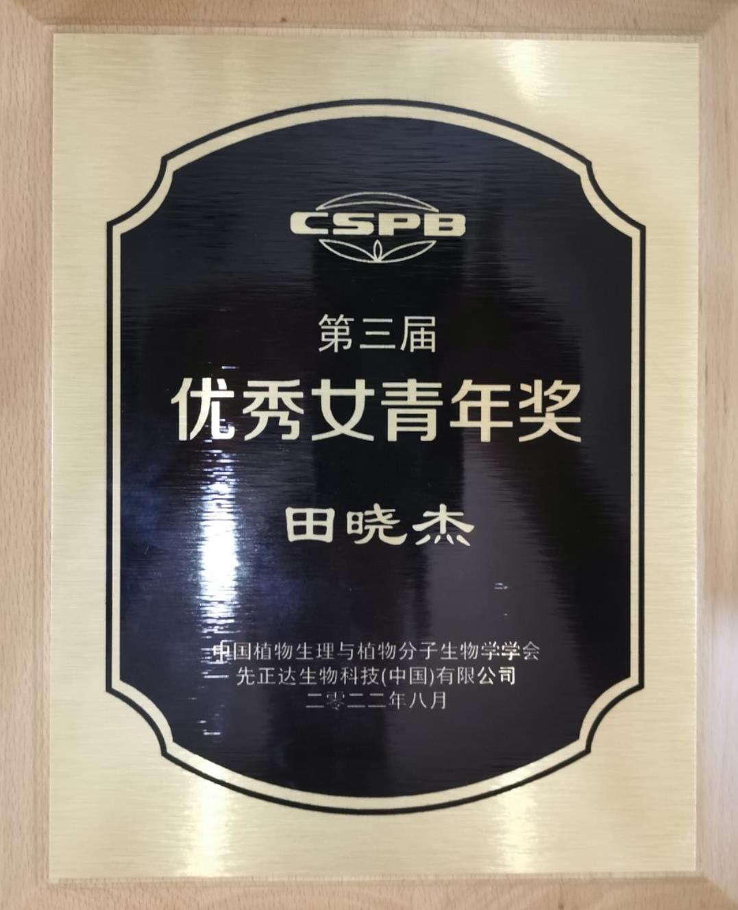 喜讯:田晓杰荣获中国植物生理与植物分子生物学学会第三届优秀女青年奖