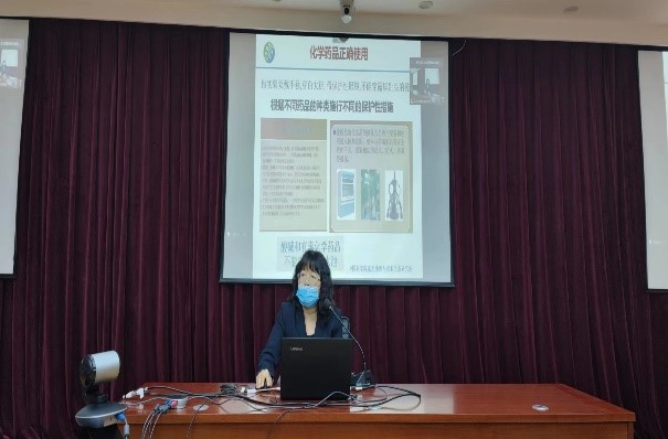 农田有害生物控制学科组王从丽老师根据多年实验室工作经验,分别从实验室安全提示、应急处理、化学药品安全性种类及使用、实验室安全操作行为等4个方面给大家讲解了实验室安全;综合办(含党办)副主任韩斌介绍了疫情防控方案(第九版)内容和针对哈市近期疫情情况需要采取的个人防护措施,并通报了今年安全检查发现的安全隐患问题及整改情况;哈尔滨百家安消防宣传中心史玉玺在重点剖析了近几年实验室着火、爆炸安全事件案例分析;农田有害生物控制学科组李春杰老师在无菌实验室给大家详细地讲解了安全操作注意事项;最后,在园区空地处新入所职工和研究生在物业公司员工张宏图的指导下掌握了灭火器的使用方法。