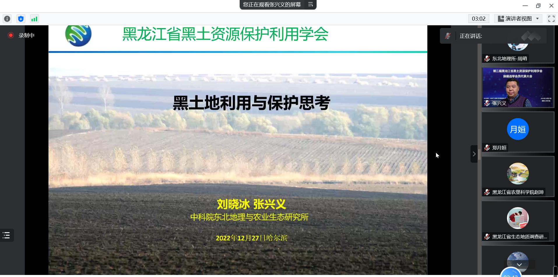 12月27日,第二届黑龙江省黑土资源保护利用学会换届选举会员代表大会成功召开。此次会议由黑龙江省黑土资源保护利用学会主办,中国科学院东北地理与农业生态研究所农业技术中心承办。黑龙江省科学技术协会学会部吕强部长、中国科学院东北地理与农业生态研究所王宗明副所长等出席会议并致辞。本次大会以线上形式举行,来自中国科学院东北地理与农业生态研究所、东北农业大学、黑龙江省黑土保护利用研究院、东北林业大学、黑龙江八一农垦大学、黑龙江省农垦科学院、黑龙江大学和黑龙江省水利科学研究院等十余家省内科研院所、高校及地方农业技术推广部门的200余名会员代表参加会议。