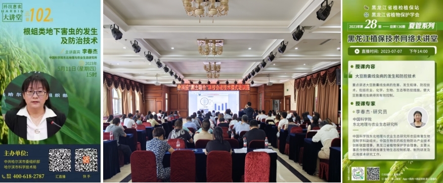 应哈尔滨市科技局、齐齐哈尔市科技局、黑龙江省植物保护学会和黑龙江省植检植保站的邀请,针对当前农作物病虫害发生特点和防治过程中存在的问题,李春杰分别于5月11日在“科技惠农大讲堂”讲解了“根蛆类地下害虫的发生和防治技术”、6月29日在“中科院专家鹤城交流培训会”上交流了“农作物根部病虫害生防制剂的研发和应用”、7月7日在“黑龙江植保技术网络大讲堂”上讲解了“大豆胞囊线虫病的发生和防控技术”。李春杰宣讲的“黑土粮仓”科技会战的重要科技成果,主要涉及东北地理所自主研发的昆虫病原线虫生物杀虫剂及其应用技术、间套作葱属作物对线虫病的防控技术等生物生态控制机理和应用示范推广效果等,为粮食安全生产和土壤健康、环境友好提供了保障,使农作物产能得到提升。