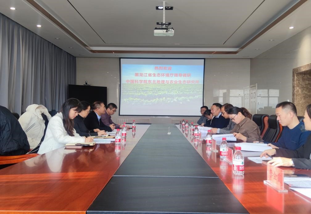 2023年11月15日,黑龙江省生态环境厅科技处处长马立新一行到东北地理所农业技术中心调研。东北地理所副所长、党委副书记、农业技术中心主任王宗明,科研计划与财务处处长刘俊杰以及生态环境领域相关科研人员参加会议。