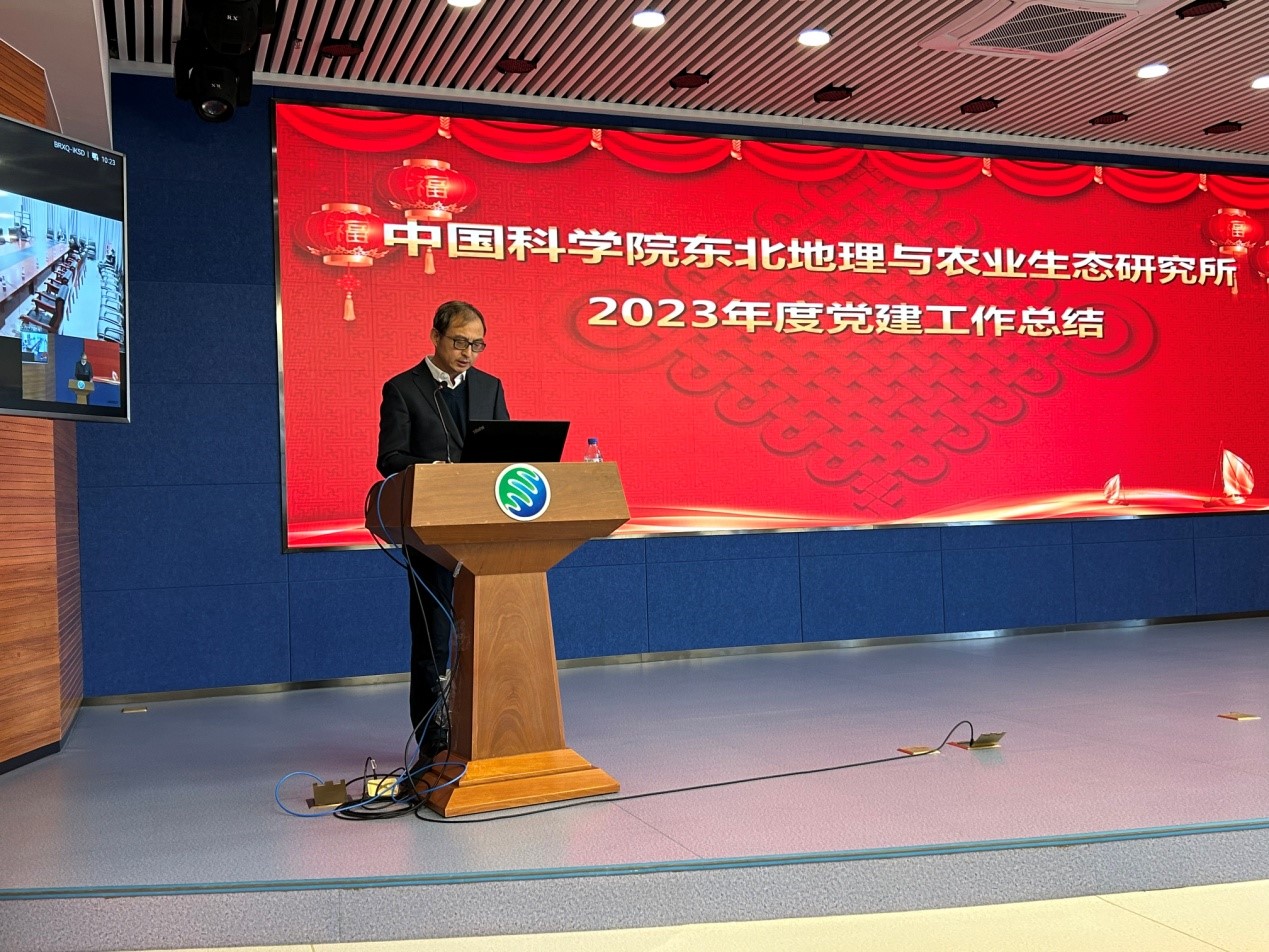副所长、党委副书记王宗明代表所党委做党建工作报告。他从以下各个方面介绍了2023年党建工作开展情况:抓实党的政治建设,进一步加强党对科技工作的全面领导;扎实开展学习贯彻习近平新时代中国特色社会主义思想主题教育;强化思想引领,坚持不懈用习近平新时代中国特色社会主义思想凝心铸魂;落实党管干部、党管人才要求,履行全面从严治党主体责任;坚持大抓基层的鲜明导向,不断增强基层党组织的政治功能和组织功能;持之以恒正风肃纪反腐,坚持不懈把全面从严治党向纵深推进;突出政治引领,深入推进统战群团和离退休干部工作王宗明同时分析了研究所党建工作存在的问题,提出2024年工作思路和重点工作举措。2024年,东北地理所将在院党组、省直工委、分院系统单位党委的正确领导下,更加紧密地团结在以习近平同志为核心的党中央周围,深刻领悟“两个确立”的决定性意义,增强“四个意识”,坚定“四个自信”,做到“两个维护”;进一步强化“国家队”“国家人”“国家事”“国家责”定位,始终胸怀“国之大者”,奋力拼搏,真抓实干,努力抢占科技制高点;强化“抢”的意识、“高”的标准,凝心聚力,狠抓工作落实,促进研究所各项事业再上新台阶。