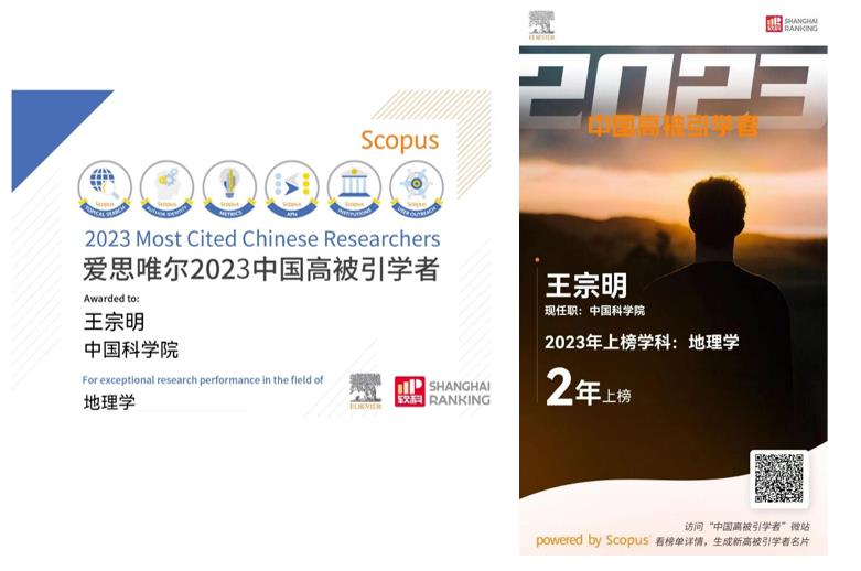 王宗明研究员连续二年入选Elsevier“中国高被引学者”榜单