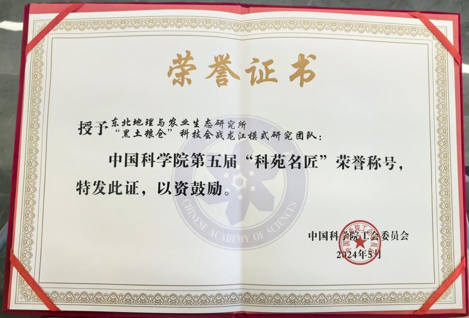 2024年5月17日,中国科学院第五届“科苑名匠”发布活动在京举行,我所“黑土粮仓”科技会战龙江模式研究团队喜获中国科学院第五届“科苑名匠”称号。