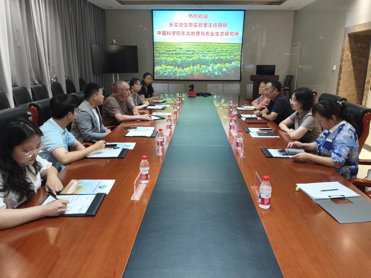 7月23日上午,俄罗斯喀山联邦大学教授、乐实微生物实验室主任伊戈尔·达夫列特巴耶夫,哈尔滨乐实农业科技有限公司科研主任马艺倩一行调研东北地理所农业技术中心。东北地理所农业技术中心副主任、科研计划处处长刘俊杰,科研计划处副处长李娜和曹旭东陪同调研。