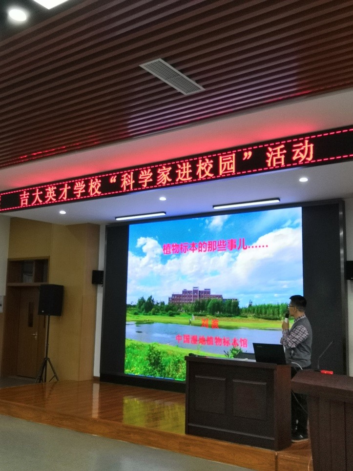 2018年10月10日,我所湿地标本馆刘波博士到吉大附中英才学校为初中一年级学生开展主题为“植物标本那些事儿......”的科普活动,报告会由吉大附中英才学校副校长戴汝龙主持,戴校长代表校方,为刘波博士颁发了“科学导师”的聘书。