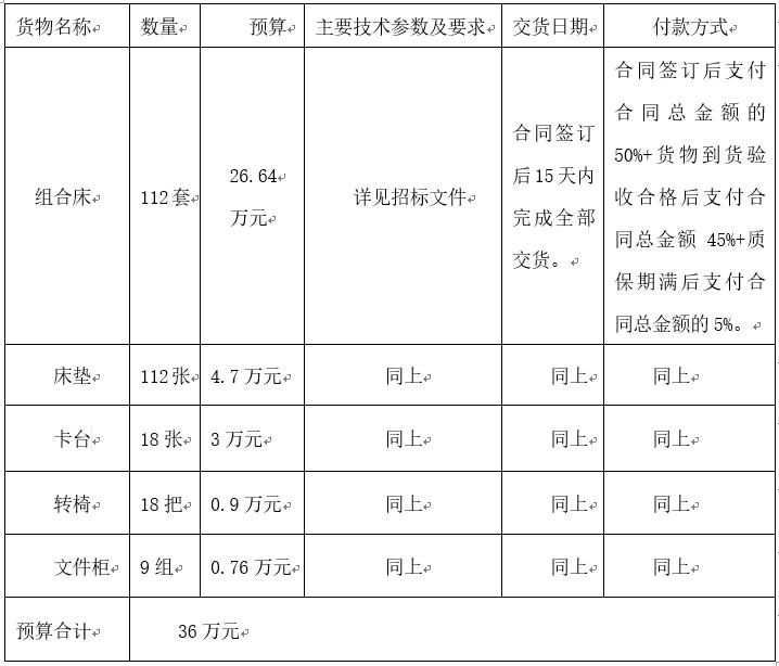 三、招标内容:组合床、卡位等(具体请详见招标文件)