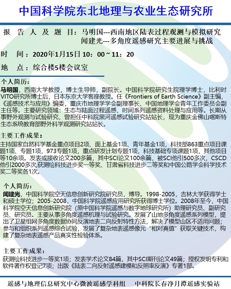 微波遥感学科组学术报告通知-马明国 教授、闻建光 研究员